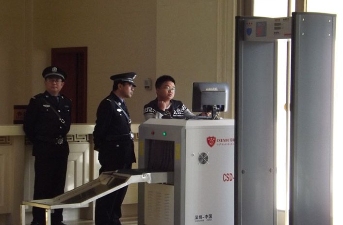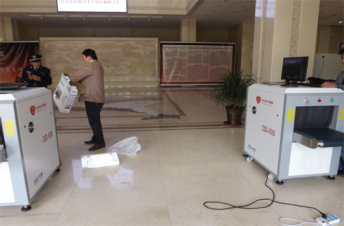 2015年5月7日甘肅省馬家窯彩陶文化博物館使用中神盾多臺安檢門及X光行李安檢機對參觀人員進行安全檢查。